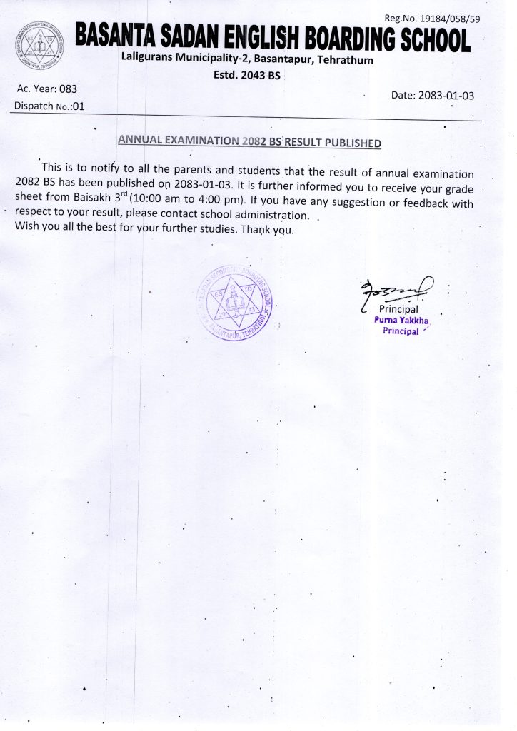 Annual Examination 2082 BS Result Published