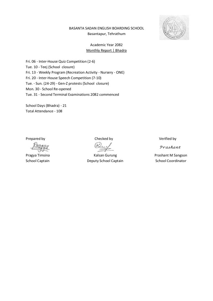 “Monthly Report | Bhadra” मासिक प्रतिवेदन (भदाै)