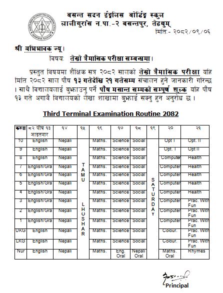 Third Term Exam 2082 Routine